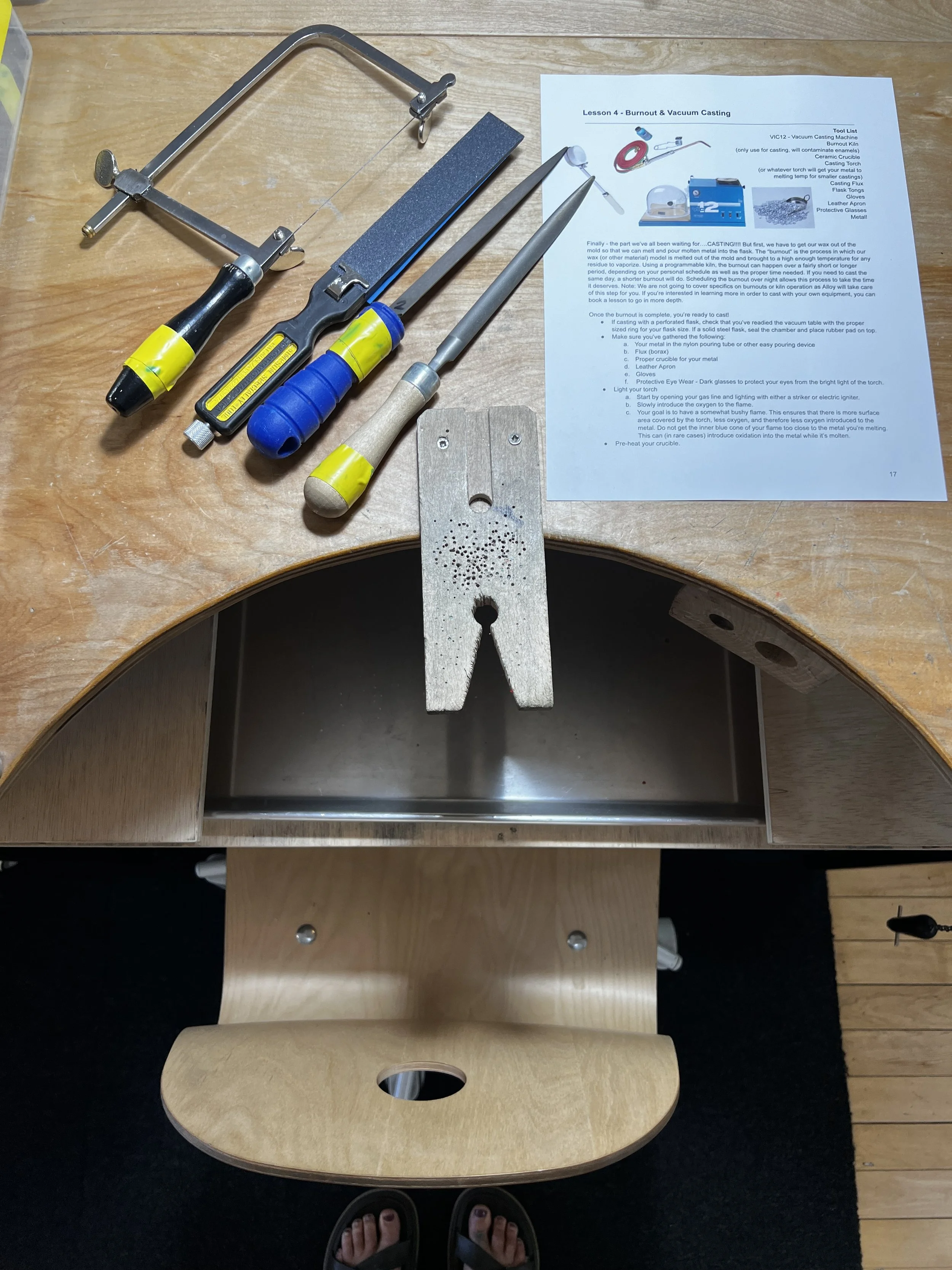 REQUIRED - We will be working with investment in this class which can be very dangerous to your health without proper protection. Please purchase and bring to class a respirator that's appropriate for protection against silica particulates. Respirator recommendations will be sent after you purchase a ticket.